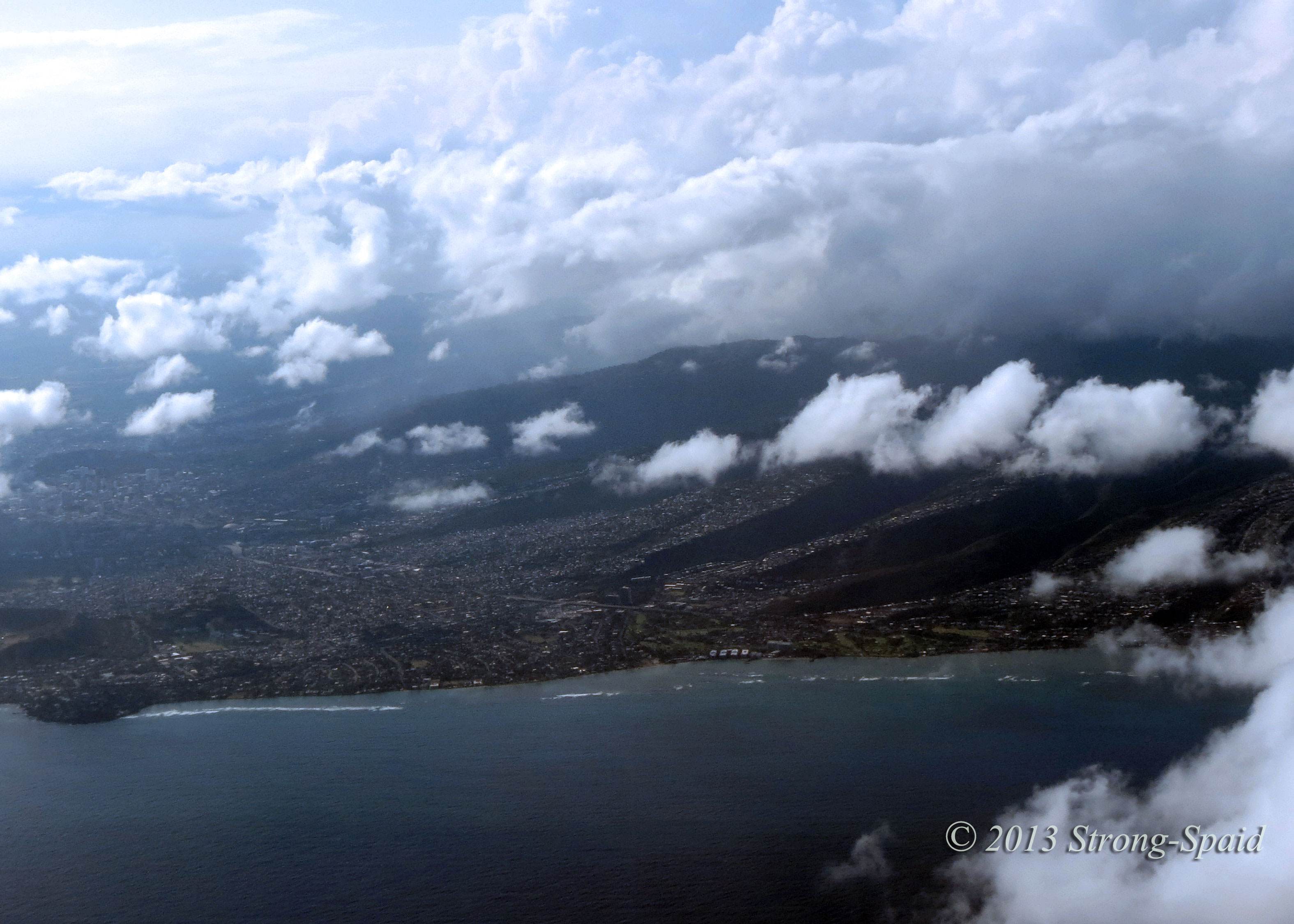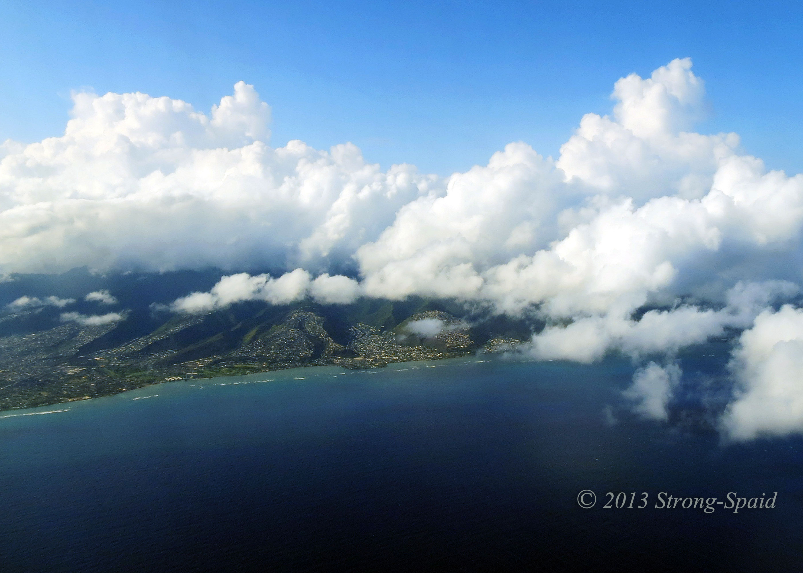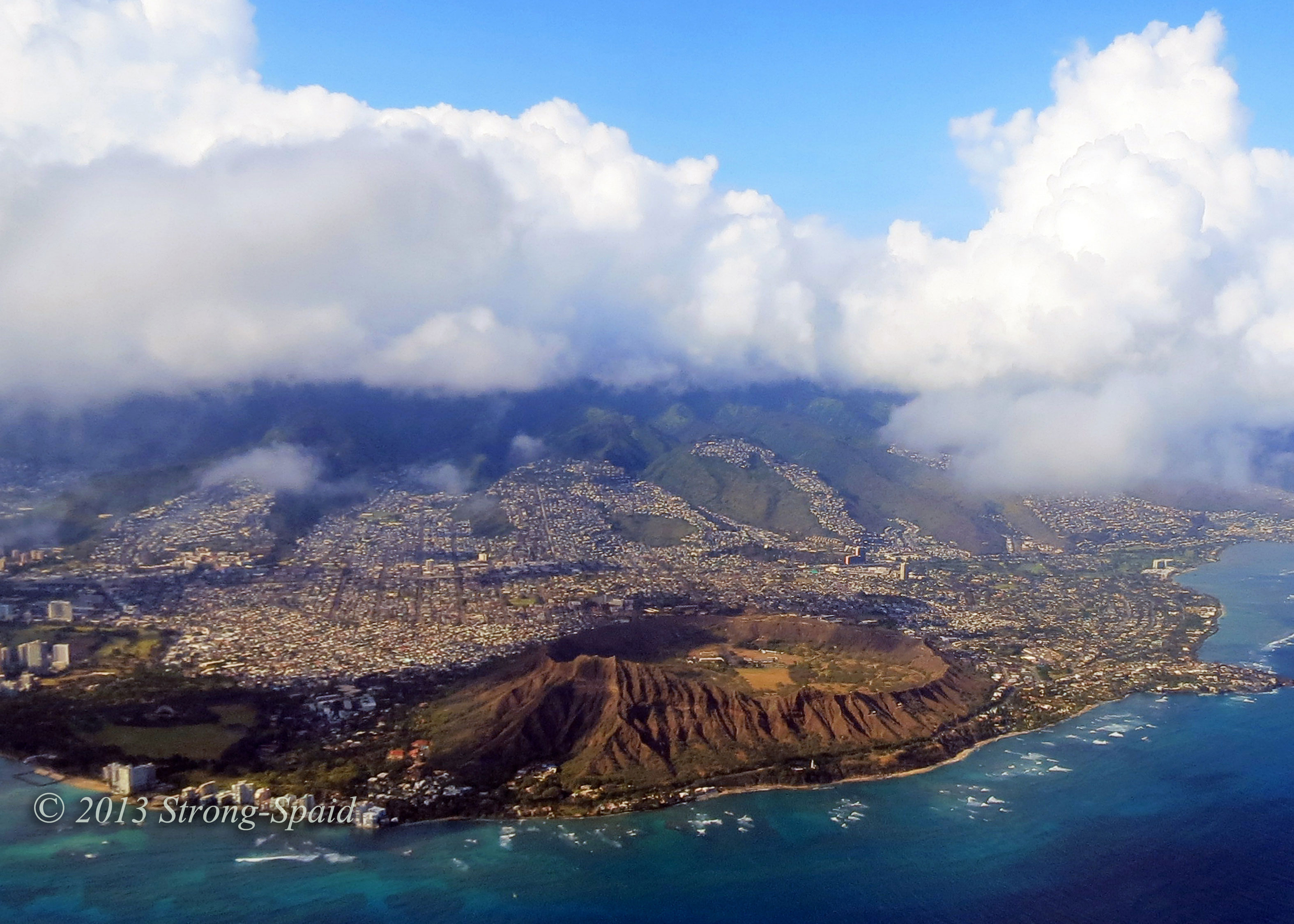 I could see the the island sliding farther and farther away from me. Frustration! So I took off the seat belt for a few seconds, grabbed my bag, put my seat belt back on, took my camera out—and was able to get some quick shots of Diamond Head and Hanauma Bay before the island vanished from view.