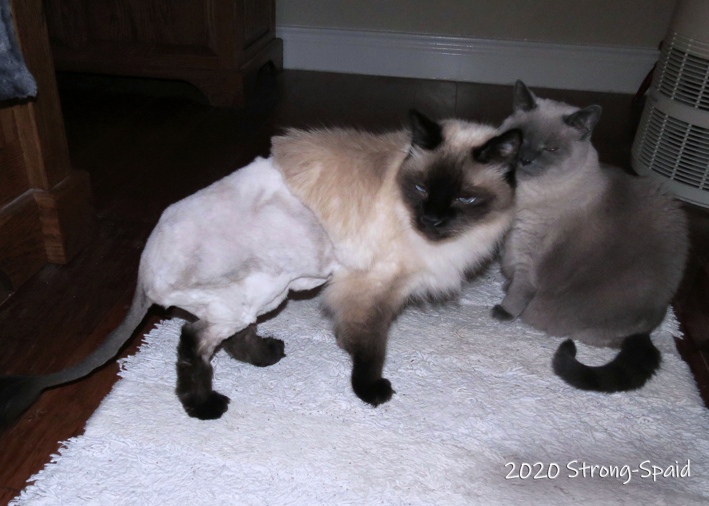 Keona was a happy Balinese cat until the vet shaved off half of his fur coat. Now he is a partially naked and confused Christmas lion, who does not understand WHY we did this to him. After we brought him back home from the vet’s office, I tried to make him feel better by covering him with a warm blanket. I guess that just added insult to injury, because he threw the blanket off, glared at me, and walked away. I could tell by the look in his eyes that he didn’t like me very much at that point. Sigh. I would love to tell him exactly why we had to remove a large section of his once beautiful fur coat, but that is impossible (as he obviously does not speak English).